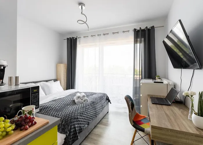 דירת ורשה P&O Serviced Apartments - Dionizosa מציעה מטבחון וכמו כן גם חדרים עם מרפסת, שולחן עבודה וטלוויזיה עם מסך שטוח וערוצי לוויין. Parafia bl. Marceliny Darowskiej w Lomiankach נמצא במרחק של 2.8 ק"מ משם ושדה תעופה שדה התעופה ורשה פרדריק שופן נמצא תוך פחות מ-32 דקות באוטו.